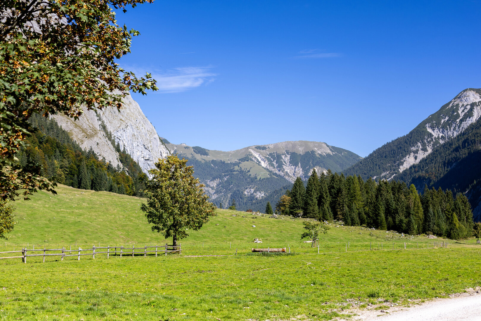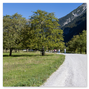 Der Große Ahornboden. Ein Traumort im Karwendel und ein wirklich eindrucksvolles Naturerlebnis. Die einzige Straße führt von Bayern in dieses Tal im nördlichen Tirol. Wir nutzten die Gelegenheit, von Grainau über Garmisch-Partenkirchen hierhin zu fahren. Wie der Name schon sagt, prägen ganz viele alte Bergahorne dieses wunderschöne Tal mit seinen genauso schönen Wanderwegen. Wie übrigens nicht nur wir wissen: sowohl die Passstraße, die Parkplätze als auch die kleinen Dörfer wurden regelrecht überlaufen. Unbedingt außerhalb der Saison und nicht an Wochenenden besuchen.