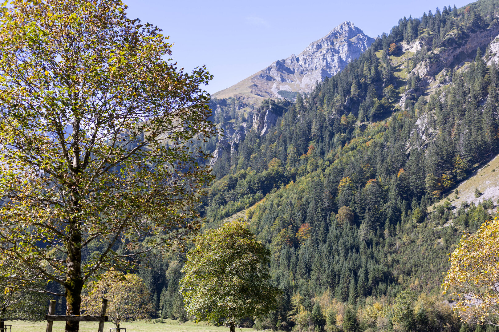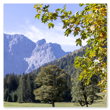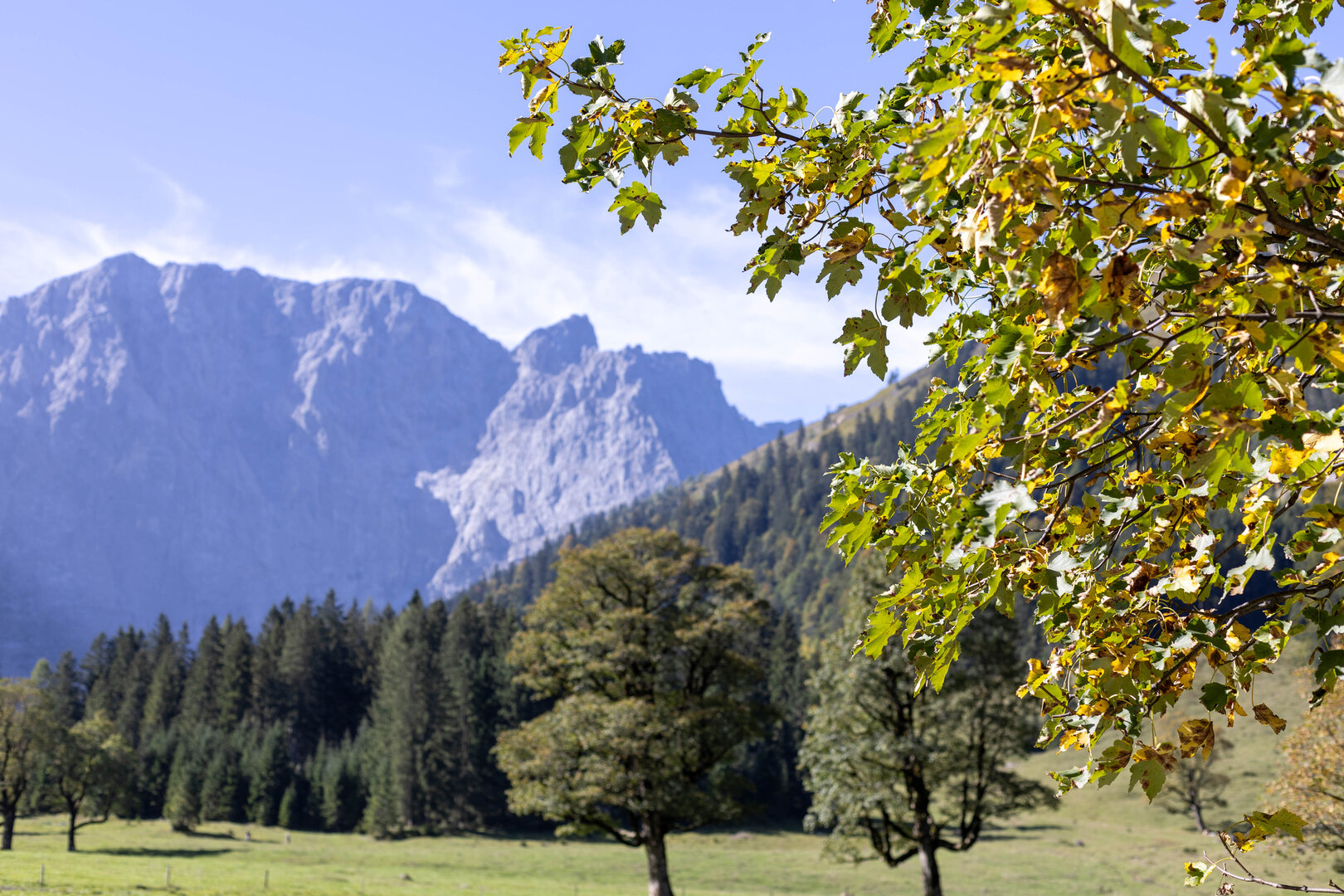Der Große Ahornboden. Ein Traumort im Karwendel und ein wirklich eindrucksvolles Naturerlebnis. Die einzige Straße führt von Bayern in dieses Tal im nördlichen Tirol. Wir nutzten die Gelegenheit, von Grainau über Garmisch-Partenkirchen hierhin zu fahren. Wie der Name schon sagt, prägen ganz viele alte Bergahorne dieses wunderschöne Tal mit seinen genauso schönen Wanderwegen. Wie übrigens nicht nur wir wissen: sowohl die Passstraße, die Parkplätze als auch die kleinen Dörfer wurden regelrecht überlaufen. Unbedingt außerhalb der Saison und nicht an Wochenenden besuchen.