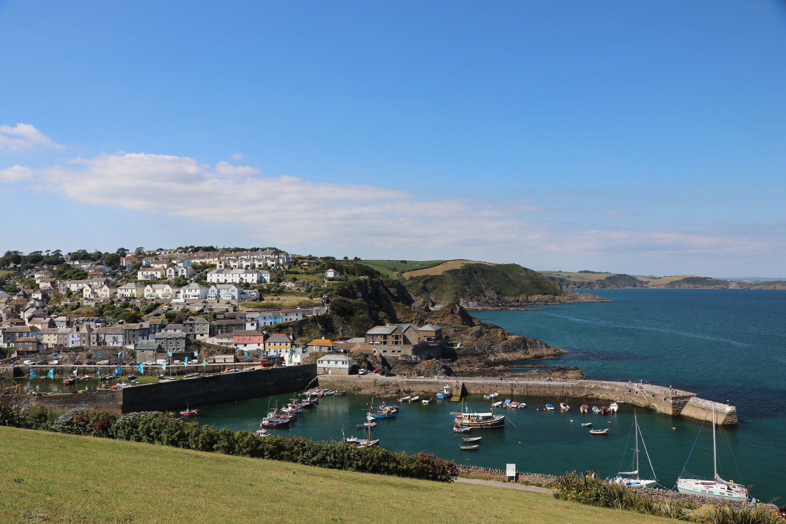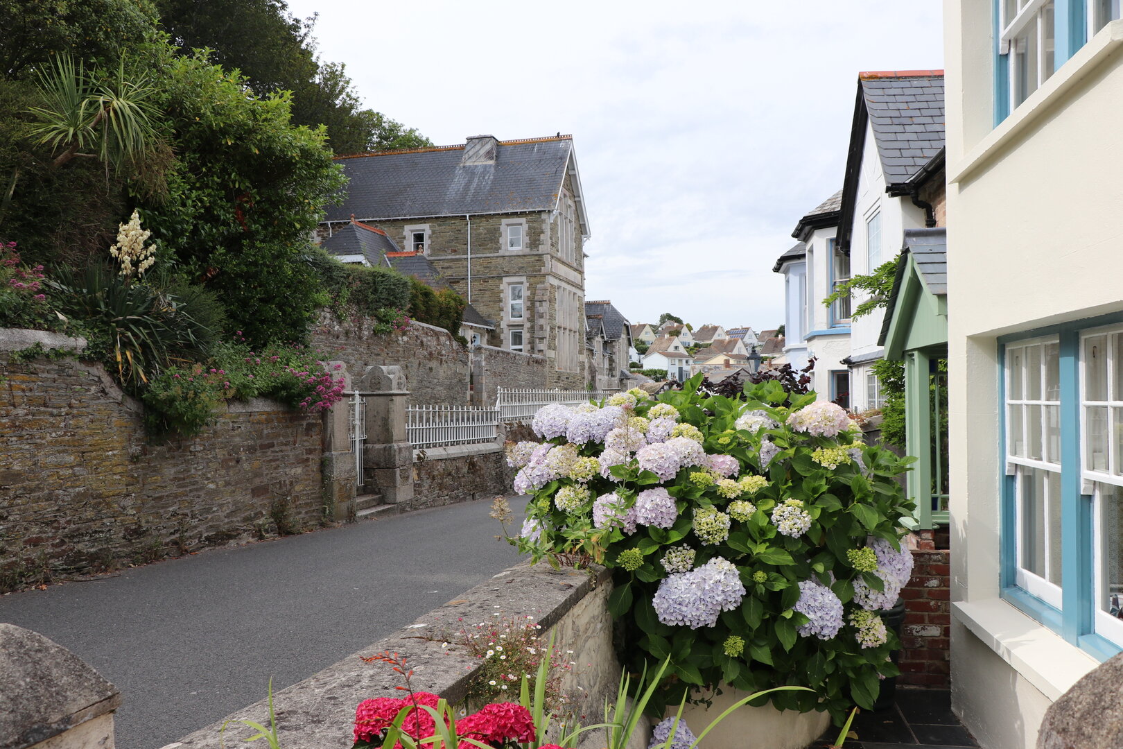 Auf dem "Rosamunde-Pilcher-Trail", wie wir einmal von einer vergnügten Gruppe Engländerinnen gehört haben, sind wir von Gorran Haven zu unseren Erkundungsausflügen aufgebrochen. Gorran Haven liegt am südlichen Kanalufer der Landzunge, die bis Land's End reicht. Hier muss man wirklich einmal gewesen sein. Pittoreske Orte, enge Gassen, auch außerhalb der Ortschaften und eine seltene Blütenpracht. Bäderkultur fanden wir z.B. in St. Ives, Newport oder Padstow im nördlichen Teil der Landzunge. Im Süden sind Fowey, Truro, Falmouth sowie Marazion mit dem im Meer liegenden St. Michael's Mount einen Besuch wert. Und natürlich Mousehole, ein sehr nettes winziges Örtchen, in dem wir das erste Mal "cornish cream tea" (Tee, Scones, Clotted Cream und Konfitüre) genießen konnten. Fabelhaft.